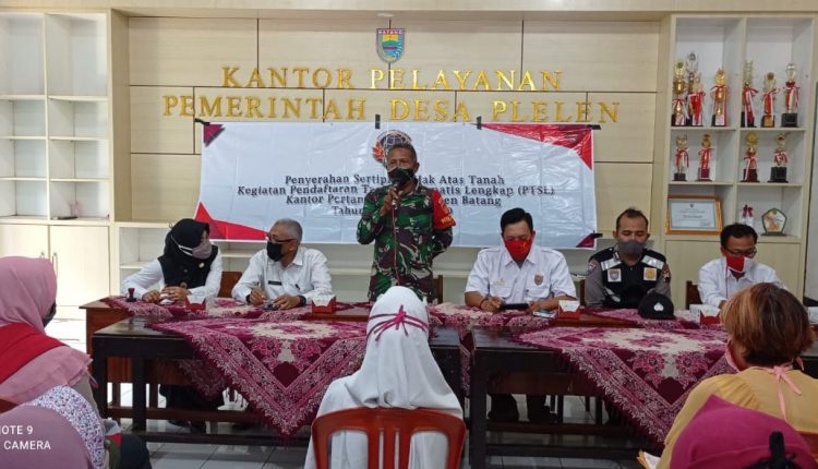 TerabasNews – Jateng BATANG — Danramil 03/Gringsing Kapten Infanteri. Gunawan mendampingi Penyerahan Sertifikat Tanah Pada Program Pendaftaran Tanah Sistimatis Lengkap (PTSL ) Rabu. 23/12/2020 Di Desa Plalen, Kecamatan Gringsing kabupaten Batang.