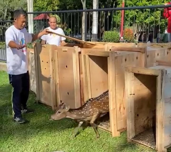“Karna untuk beberapa hari kedepan rusa tersebut masih dalam keadaan stres dari perjalanan jauh, jadi masih butuh pengawasan dari dokter hewan dan pemantauan makanannya,” katanya.