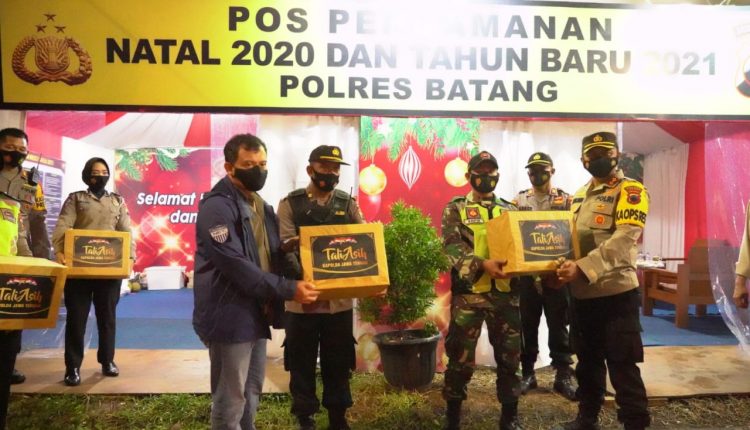Sebelum meninggalkan lokasi, Kapolda didampingi Kapolres Batang memberikan tali asih untuk petugas pos pengamanan.
