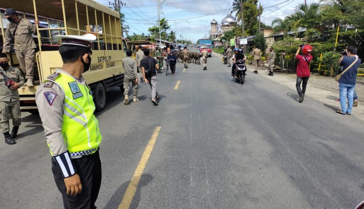 TerabasNews – Aceh Barat – Pemerintah Kabupaten Aceh Barat melalui Tim Gabungan, menertibkan semua hewan ternak sapi, kerbau dan kambing yang dilepas pemiliknya hingga berkeliaran di jalan raya dan mengganggu fasilitas umum, Senin (28/12/2020).