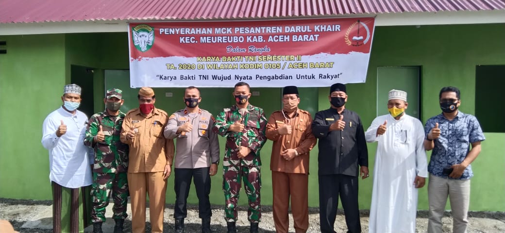 “Pembanguna MCK ini merupakan bentuk perhatian dan kepedulian TNI dalam hal ini Kodim 0105/Aceh Barat terhadap dunia pendidikan terutama bidang keagamaan. Yang mana Santriwan dan Santriwati ini merupakan generasi penerus bangsa sebagai calon estafet kepemimpinan masa depan. Kami akan selalu mensupport dunia pendidikan, melalui pembangunan MCK Dayah ini adalah bukti Karya Bhakti TNI Sebagai Wujud Nyata Pengabdian Untuk Rakyat”, terang Dandim