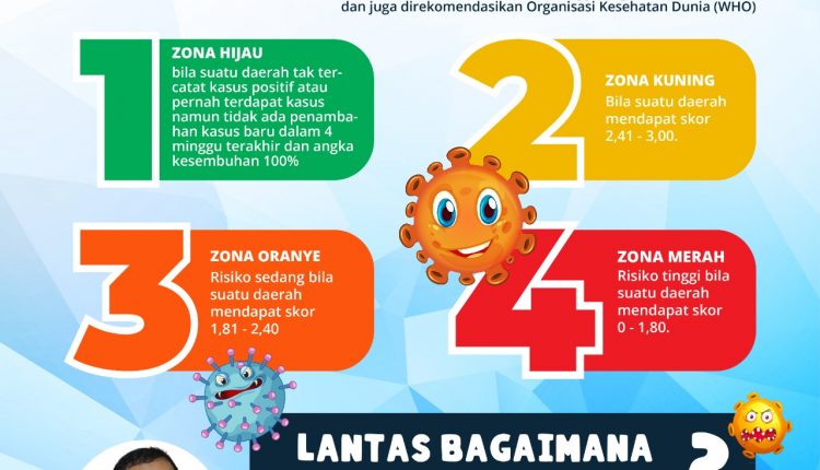 “Tim Ahli Epidemiologi dan Informatika Gugus Tugas maupun Kepala Departemen Epidemiologi Kesehatan Masyarakat FK UI pernah menyampaikan bahwa berdasarkan 15 Indikator utama penentu Zonasi yang mencerminkan tingkat kerawanan Covid 19 ada empat zona yaitu zona hijau, kuning, oranye dan merah,” kata sarbini.
