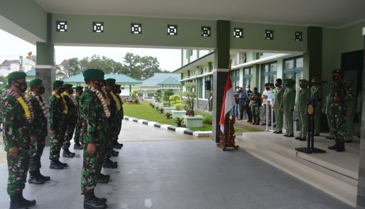 TerabasNews – Korem 045/Gaya gelar upacara penyambutan Personel Satuan tugas teritorial anggota yang baru pulang dari tugas di papua untuk membantu kodim dan koramil diwilayah timur, bertempat makorem, Rabu 13/01