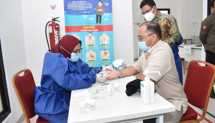 Gubernur Erzaldi melaksanakan pemeriksaan kesehatan sebagai screening awal atas kesiapan dirinya menjadi orang pertama di Bangka Belitung yang akan mendapatkan suntikan vaksin Covid-19, esok hari.