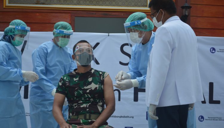 Pimpinan TNI AD Babel ini urutan kedua di Vaksin setelah Gubernur Erzaldi Rusman kemudian di lanjutkan dengan Forkopimda Provinsi lainnya.