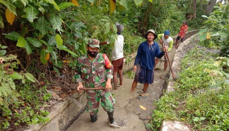Antisipasi Banjir Babinsa Bersama Warga Bersihkan Saluran Air