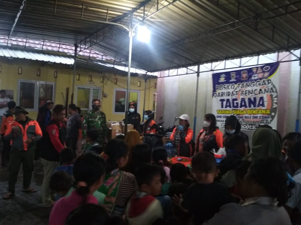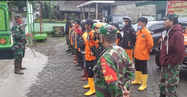 TerabasNews – BOYOLALI – Bati Tuud Koramil 07/Selo Kodim 0724/Boyolali Pelda Sugianto beserta anggota, Anggota BPBD Kabupaten Boyolali, anggota Polsek Selo, serta Tagana dan relawan melaksanakan evakuasi warga yang terdampak erupsi Gunung Merapi (2.930 mdpl), di tempat penampungan pengungsian sementara (TPPS) di Desa Tlogolele Kecamatan Selo Kabupaten Boyolali. Rabu (27/01/2021) Siang.