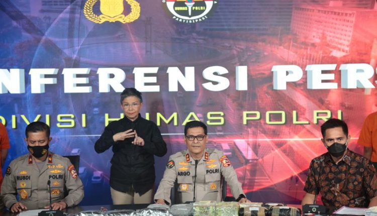 TerabasNews – JAKARTA – Ada pemandagan berbeda diacara konferensi pers pengungkapan kasus narkotika jaringan internasional yang digelar Divisi Humas Mabes Polri, Jumat (29/1/2021).