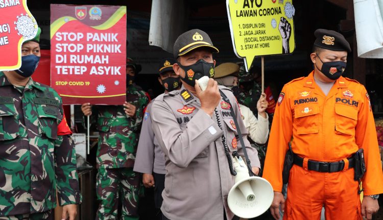 TerabasNews – Dalam rangka menggalakkan kembali kewajiban memakai masker dan disiplin masyarakat terhadap protokol kesehatan guna mencegah penyebaran virus Covid19 di wilayah Kabupaten Kendal, Polres Kendal bersama Kodim 0715 Kendal dan yang tergabung dalam Satgas Covid19 Kabupaten Kendal mengadakan pembagian masker dan edukasi protokol kesehatan di Pasar Cepiring, Rabu (3/2/2021).