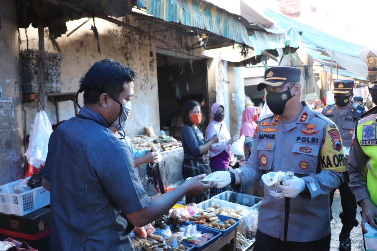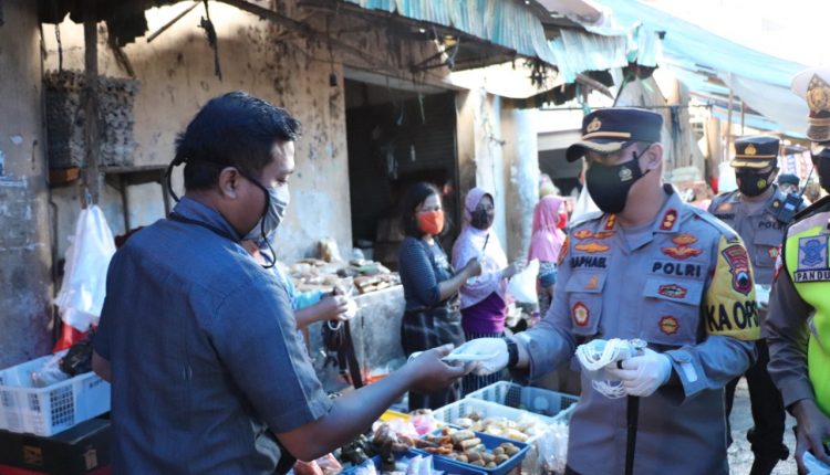 Kapolres kendal dan Forkompimda bagikan masker di Pasar Weleri