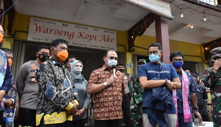 TerabasNews – TANJUNG PANDAN – Menteri Pariwisata dan Ekonomi Kreatif RI, Sandiaga Uno, mengakui keindahan Belitung saat berkunjung dan menikmati santap pagi di Waroeng Kopi Ake Kawasan KV Senang, Tanjung Pandan, Kabupaten Belitung, Jumat (5/2/21).
