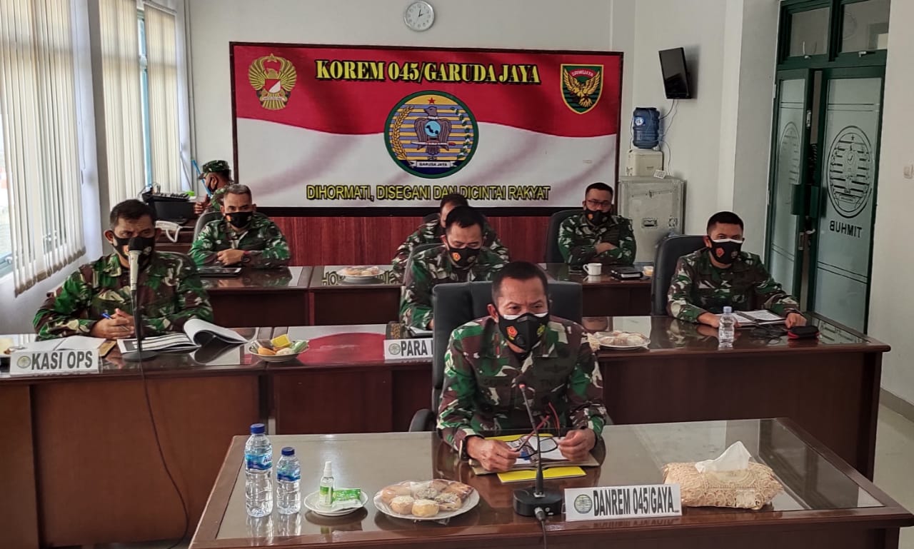 Hadir dalam kegiatan vicon tersebut para Kasi Kasrem 045/Gaya (R.H. Penrem).