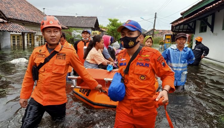 TerabasNews – Semarang – Tingginya intensitas curah hujan yang mengguyur Kota Semarang dan sekitarnya sejak beberapa hari terakhir, bersamaan dengan air laut pasang mengakibatkan banjir di Kota Semarang. Tim SAR Ditpolairud dan Satbrimob Polda Jateng melaksanakan evakuasi masyarakat dan tenaga kesehatan yang terdampak banjir dengan menggunakan truk dinas dan perahu karet, Minggu (7/2/2021).