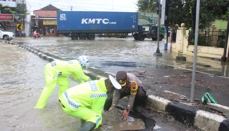 Kapolres Kendal Tutupi Lubang di Genangan Banjir