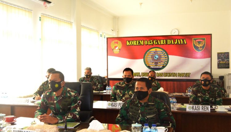 TerabasNews – Pangkalpinang (Penrem 045/Garuda Jaya) – Kodam II/Sriwijaya dan jajarannya termasuk Korem 045/ Garuda Jaya Selasa Pagi 09/02/2021 menerima Taklimat Awal pengawasan post audit Inspektorat Jenderal TNI AD (Itjenad) melalui Video Confrence.