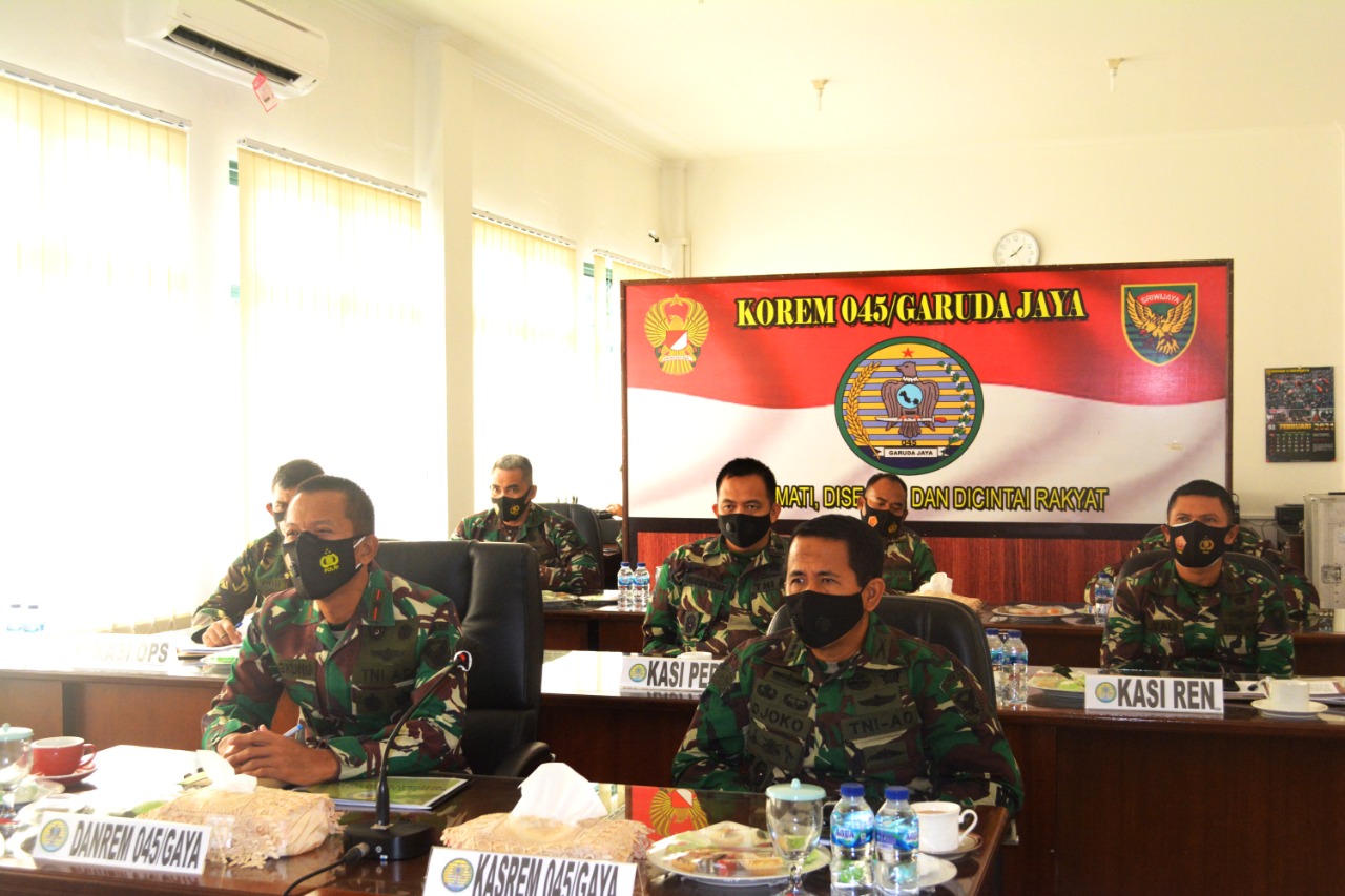 TerabasNews – Pangkalpinang (Penrem 045/Garuda Jaya) – Kodam II/Sriwijaya dan jajarannya termasuk Korem 045/ Garuda Jaya Selasa Pagi 09/02/2021 menerima Taklimat Awal pengawasan post audit Inspektorat Jenderal TNI AD (Itjenad) melalui Video Confrence.
