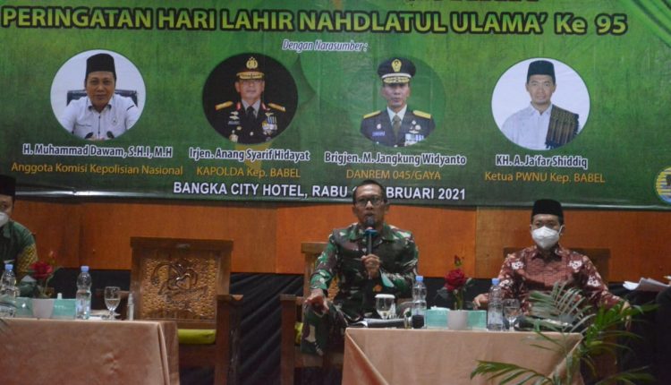 TerabasNews – Pangkalpinang. (Penrem 045/Garuda Jaya) – Dalam rangka memperingati Hari Lahir Nahdatul Ulama (NU) ke-95 di Provinsi Kepulauan Bangka Belitung di gelar Dialog Kebangsaan Rabu 10/02/2021 di Hotel Bangka City Kelurahan Semabung Lama Kecamatan Bukit Intan Pangkalpinang.