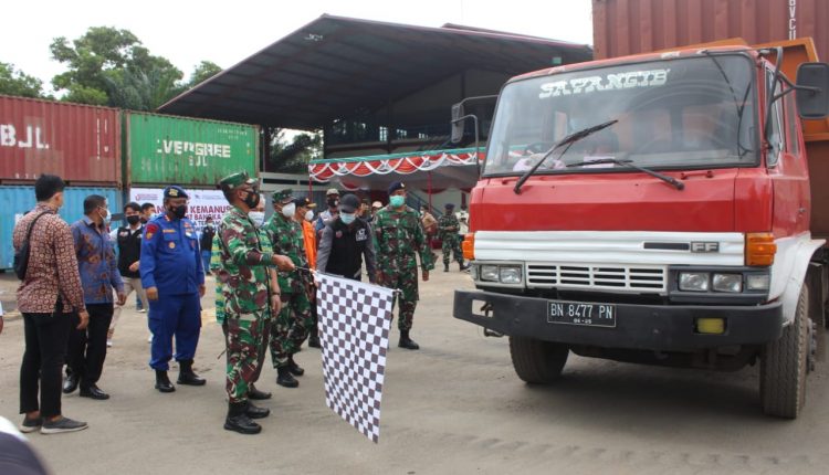 TerabasNews – Pangkalpinang. (Penrem 045/Garuda Jaya) – Danrem 045/Garuda Jaya Brigjen TNI M Jangkung Widyanto, S.I.P. M.Tr.(Han) menghadiri pelepasan bantuan kemanusiaan masyarakat Babel untuk saudara yang terdampak gempa di Sulawesi Barat Kamis 11/02/2021 tempat PT Bangka Jaya Line Jalan Ketapang Pangkalbalam Kota Pangkalpinang.