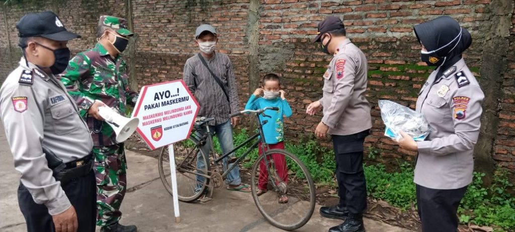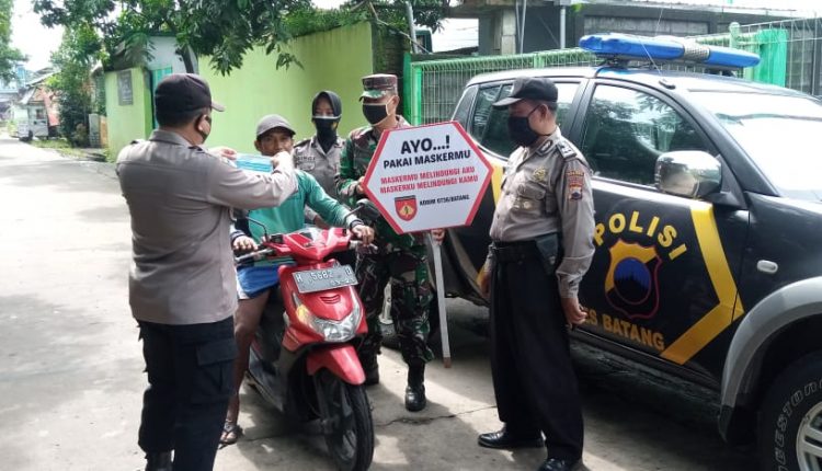 TerabasNews – Batang – menekan angka penyebaran COVID-19, TNI Polri di kecamatan Gringsing rutin menggelar Operasi Yustisi sekaligus membagikan masker di Jalan Desa Lebo