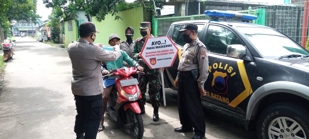 TerabasNews – Batang – menekan angka penyebaran COVID-19, TNI Polri di kecamatan Gringsing rutin menggelar Operasi Yustisi sekaligus membagikan masker di Jalan Desa Lebo