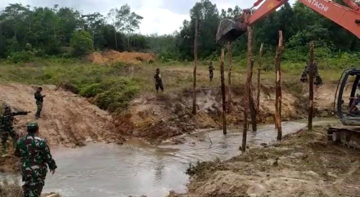 “Hari ketiga pra TMMD ini kita lihat para personel gotong royong membuat pancang jembatan di aliran sungai dibantu dengan eksapator,” ujar Dandim
