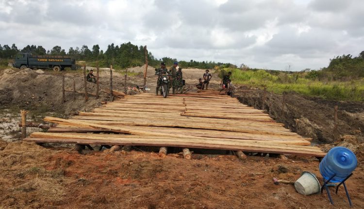 TerabasNews, Bangka Barat – Proses Pembuatan Jembatan penyebrangan pada giat TMMD ke 110 Kodim 0431 Bangka Barat sudah mencapai 75 persen.