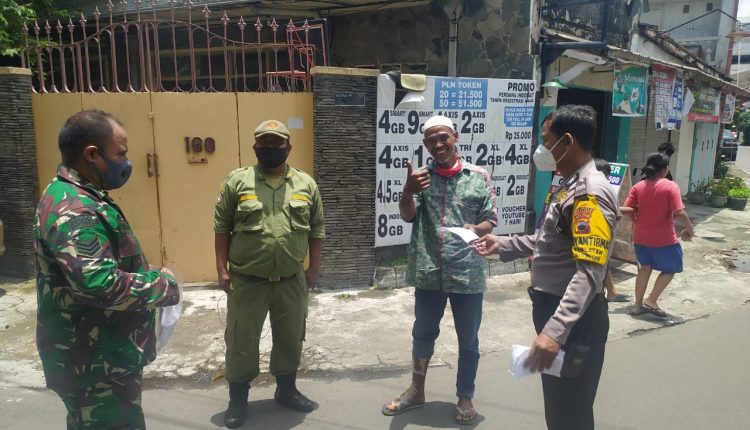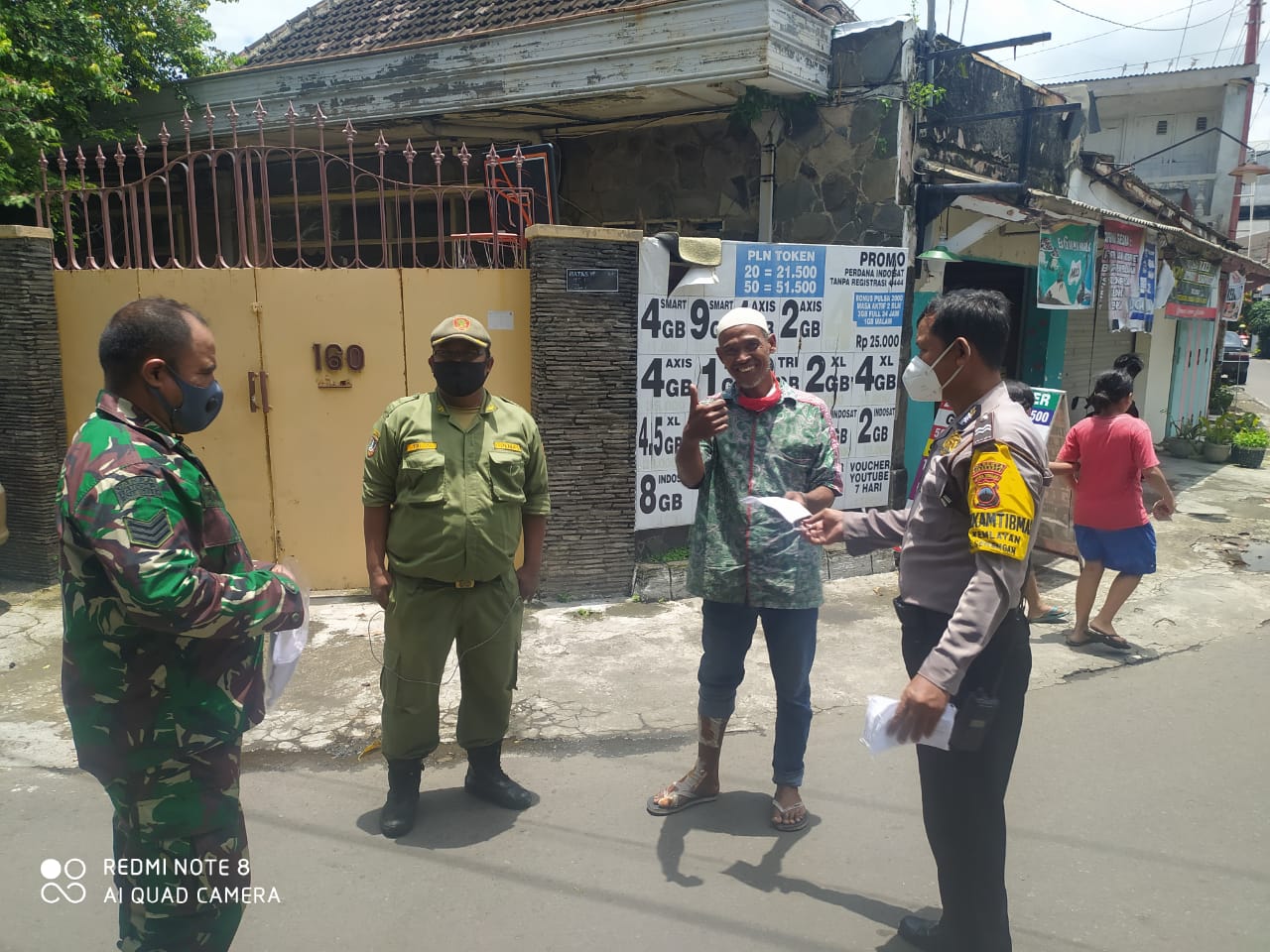 Babinsa dan Bhabinkamtibmas Kemlayan Susuri Jalan Kampung Sambil Sosialisasikan PPKM dan Bagikan Masker