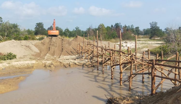 “Para satgas TMMD melanjutkan pengerjaan pembuatan jembatan dan mengambil kayu bulat untuk palang jembatan Sungai Bendul,” kata Dandim 0431/Bangka Barat. (hend)