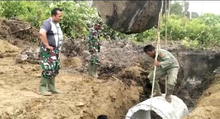 Dandim mengatakan, setelah meninjau lokasi pembuatan jembatan Sungai Bendul Desa Air Belo dirinya langsung meninjau pembuatan saluran air gorong-gorong titik kelima.