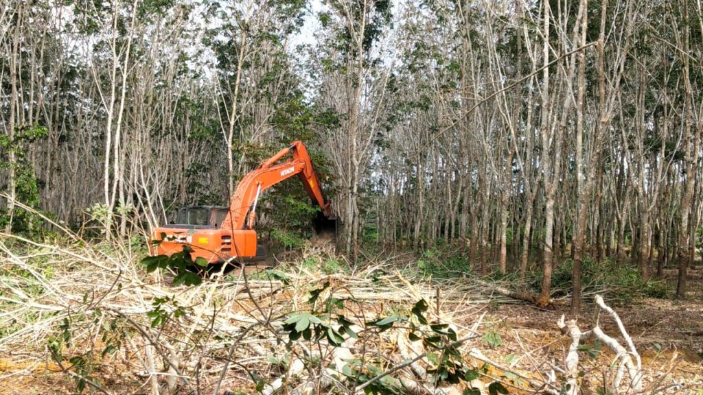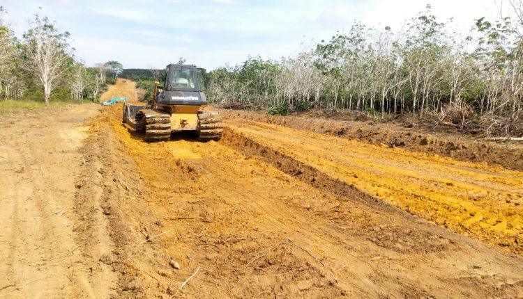 “Alat berat jenis eksavator sekarang sedang membuka badan jalan kebun karet di Desa Air Putih,” ujar Dandim.