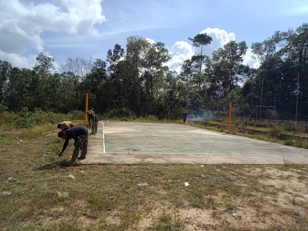 Komandan Kodim 0431/Bangka Barat, Letkol Inf Agung Wahyu Perkasa, S.Sos mengatakan satgas TMMD sudah mulai membersihkan lapangan voly yang rencananya akan direnovasi besok hari kamis 11/3.