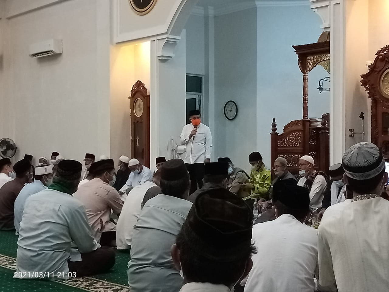 TerabasNews, Pangkalpinang – Wali Kota Pangkalpinang Provinsi Kepulauan Bangka Belitung, Maulan Aklil (Molen) menghadiri peringatan Isra’ Mi’raj 1442 Hijriah di Masjid Sabilul Muhtadin Kelurahan Bukit Merapin Kecamatan Gerunggang, Kamis (11/03)