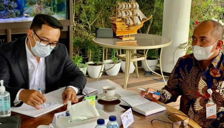 Wali Kota Pangkalpinang Maulan Aklil bertemu Gubernur Jawa Barat Ridwan Kamil akan merancang pembangunan Masjid Agung Berkubah Emas di Pangkalpinang.