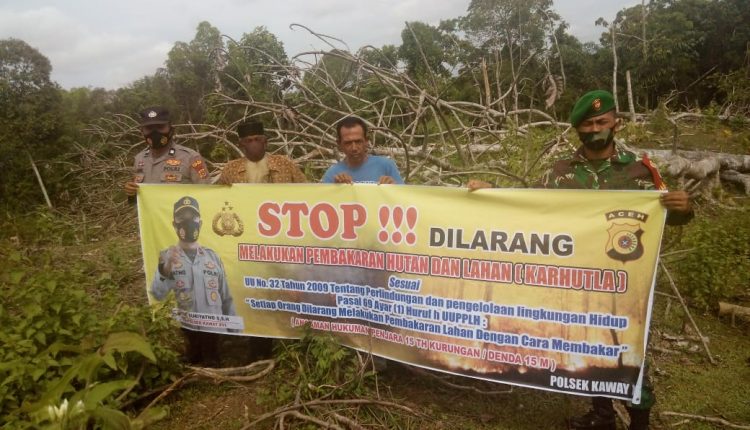 TerabasNews – Aceh Barat – Cegah terjadinya kebakaran hutan dan lahan (Karhutla) diwilayah, Babinsa Koramil 03/Kaway XVI Kodim 0105/Abar Serda Taufik Nasution bersama anggota Polsek melaksanakan sosialisasi kepada warga Desa Beuregang Kecamatan Kaway XVI, Senin (15/3/2021).