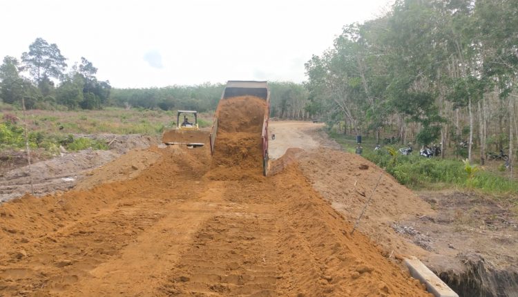 Komandan Kodim 0431/Babar, Letkol Inf Agung Wahyu Perkasa, S.Sos mengatakan satgas TMMD masih fokus pada penimbunan dan pembentukan badan jalan di rawa lengkup berair.