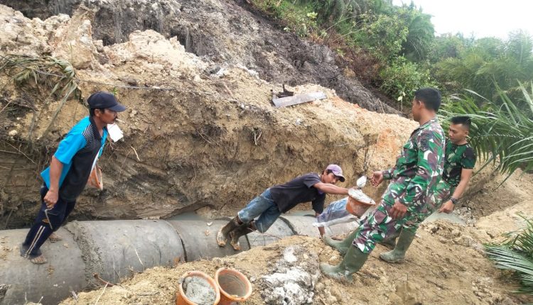 Dandim mengatakan, setelah disemen gorong-gorong langsung ditimbun dengan menggunakan exavator untuk mempercepat pengerjaan.