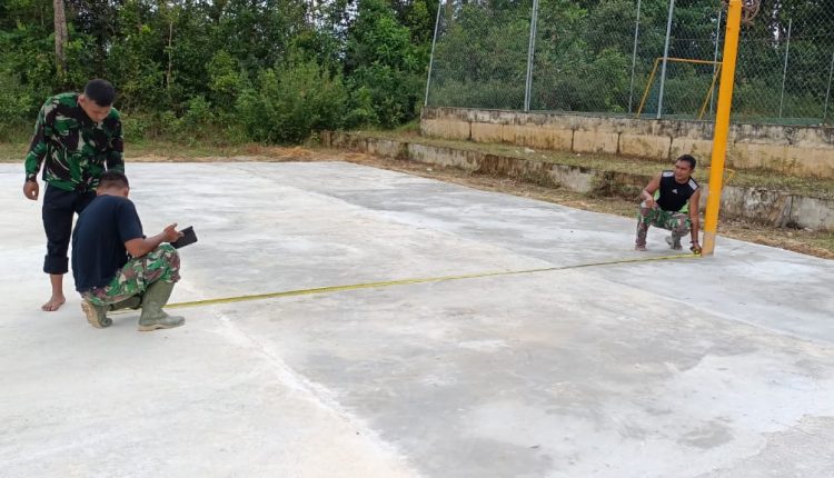 TerabasNews, Bangka Barat – Satgas TMMD ke 110 Kodim 0431/Babar melakukan pengukuran pada renovasi lapangan voli untuk pengecatan, Senin 22/03.