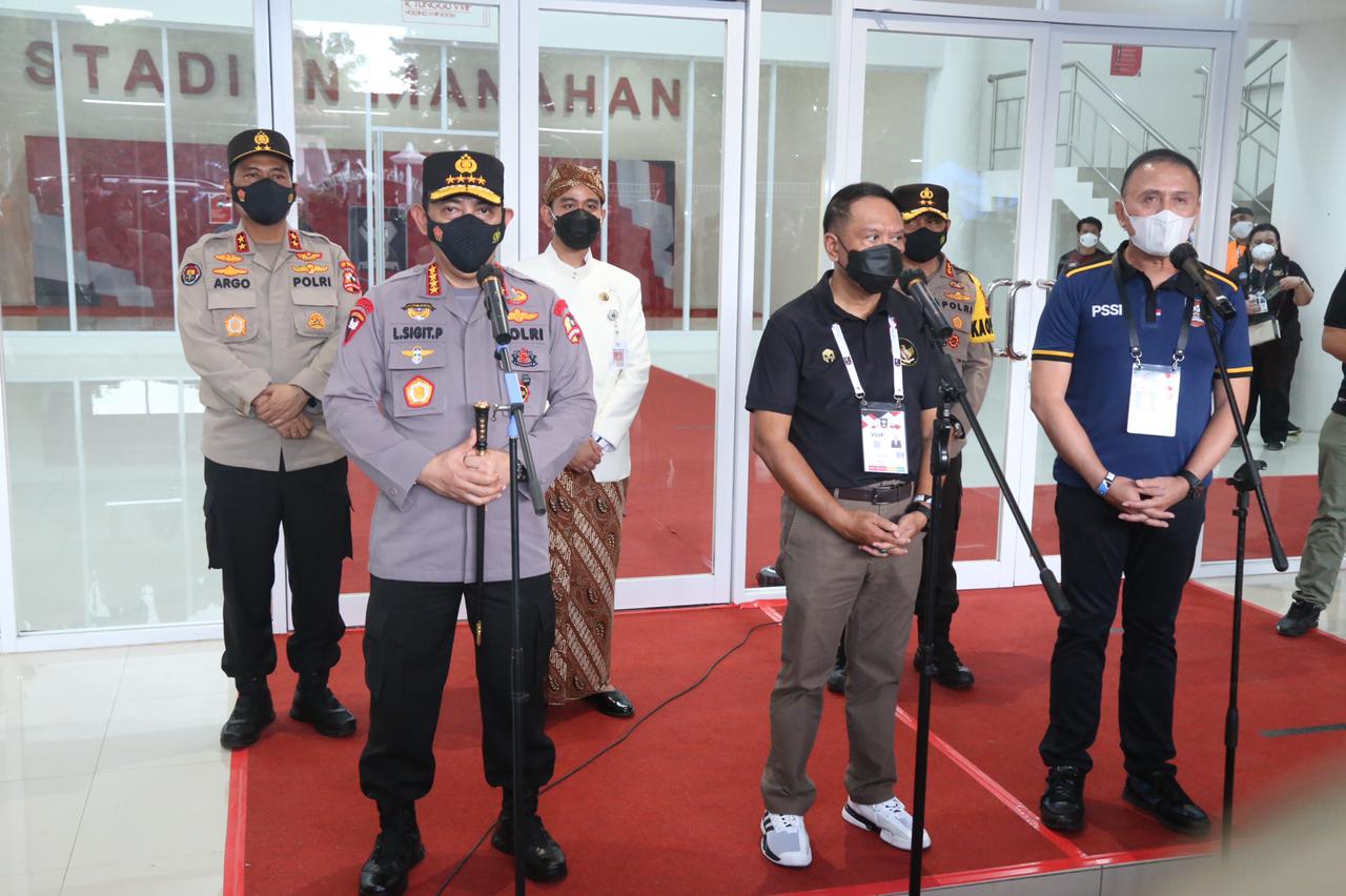TerabasNews, SOLO – Disela-sela kunjungannya ke Jawa Tengah, Kapolri Jenderal Polisi Listyo Sigit Prabowo melakukan inspeksi mendadak (sidak) ke Stadion Manahan Solo, Kamis (25/3/2021). Orang nomor satu di Korps Bhayangkara itu ingin melihat langsung bagaimana kondisi dan situasi pertandingan antara Persikabo melawan PSIS Semarang dalam perhelatan Piala Menpora 2021.