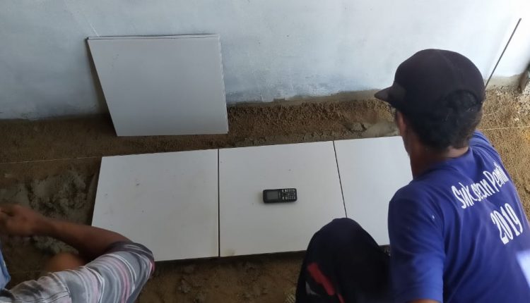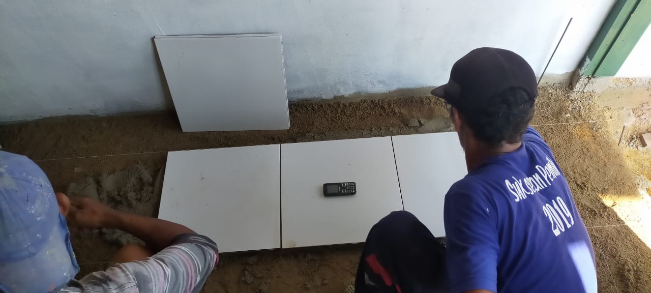“Hari ini satgas TMMD melanjutkan pemasangan keramik lantai,” ujar Komandan Satgas TMMD Kodim 0431/Babar.