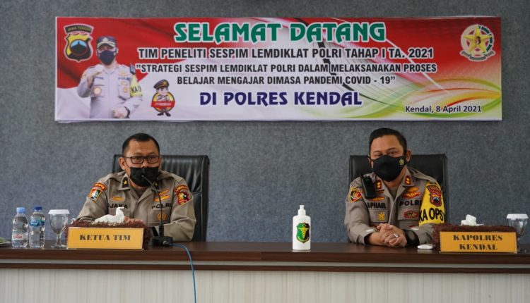 TerabasNews, Kendal – Kegiatan Penelitian Sespim Lemdiklat Polri Tahap I TA. 2021 dengan Tema “Stategi Sespim Lemdiklat Polri dalam Melaksanakan Proses Belajar Mengajar dimasa Pandemi Covid 19” bertempat di Aula Mapolres Kendal, Kamis (08/04/2021) Pukul 09.00 s.d. 11.30 WIB,