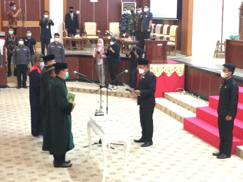 Sesuai laporan Sekertaris Dewan DPRD Prov. (Haris) tentang Keputusan Mentri Dalam Negri No. 161.19-405 Tahun 2021 tentang peresmian pengangkatan pengganti antar waktu Anggota DPRD Prov. Kep. Babel yang dilanjutkan dengan pembacaan sumpah dan penandatanganan serta penyematan Pin anggota DPRD Prov. Kep. Babel terhadap 2 anggota dewan, yaitu :
