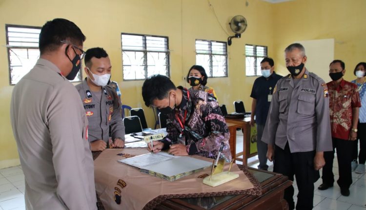 TerabasNews – Kepolisian Resor (Polres) Pekalongan menggelar acara pengambilan sumpah dan penandatanganan paktaintegritas Penerimaan Terpadu Anggota Polri (Bintara dan Tamtama Polri) T.A. 2021 yang dilaksanakan di ruang Aula Sat Binmas Polres Pekalongan, Selasa (13/4/2021)