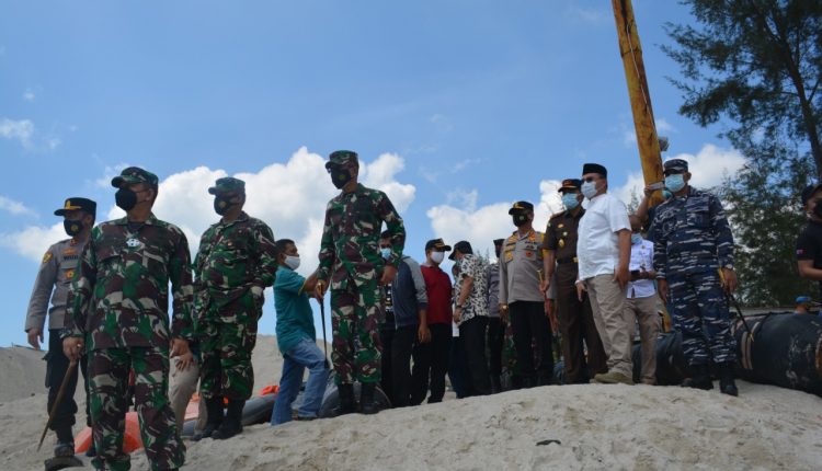 TerabasNews, Sungailiat. Penrem 045/Garuda Jaya – Danrem 045/Garuda Jaya Brigjen TNI M Jangkung Widyanto, S.I.P., M.Tr.(Han) mendampingi Gubernur Babel DR. H. Erzaldi Rousman, Kapolda Irjen Pol Drs Anang Syarif Hidayat, Kajati I Made Suarnawan, Danlanal Babel Kolonel Laut P Dudik Kuswoyo, S.E Jumat 16/04/2021 meninjau Muara Air Kantung di Kelurahan Jelitik Kecamatan Sungailiat Kabupaten Bangka.