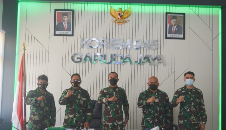 TerabasNews, Pangkalpinang. Penrem 045/Garuda Jaya – Danrem 045/Garuda Jaya Brigjen TNI M Jangkung Widyanto, S.I.P. M.Tr.(Han) memberikan pembekalan tentang kondisi wilayah dan satuan Korem 045/Gaya kepada Perwira Siswa Sekolah Staf dan Komando TNI AL Dikreg Angkatan LIX tahun 2021 melalui Vidcon Senin 19/04/2021.