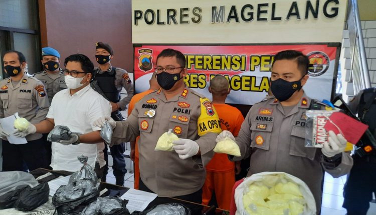 Kapolres Magelang AKBP Ronald A. Purba petugas menangkap 1 tersangka dengan barang bukti 8 Kg bahan pembuat mercon berupa Patassiumdi depan Ruko Metro Square Mertoyudan, Kab. Magelang pada Kamis (15/04/2021) sekira pukul 21.30 WIB, setelah dilakukan pengembangan petugas berhasil menangkap 2 tersangka lain dengan barang bukti lebih dari 300 Kg.