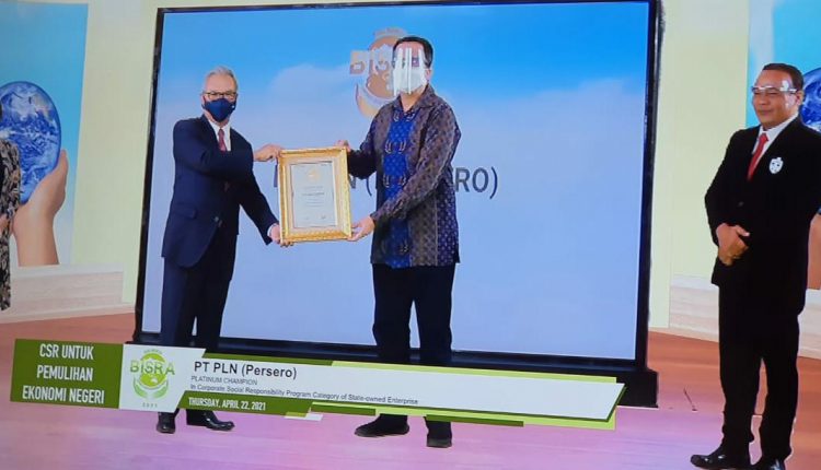 TerabasNews, Jakarta, 23 April 2021 – PLN menerima penghargaan sebagai Platinum Champion in Corporate Social Responsibility pada ajang Bisnis Indonesia Corporate Social Responsibility Award (BISRA) 2021. Penghargaan ini menjadi diberikan atas upaya PLN yang terus melakukan transformasi program CSR dan menjalankan program CSR secara berkelanjutan.