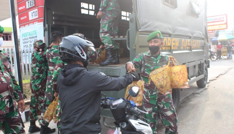 Prajurit Korem 045/Garuda Jaya Bagi-Bagi Takjil Kepada Masyarakat