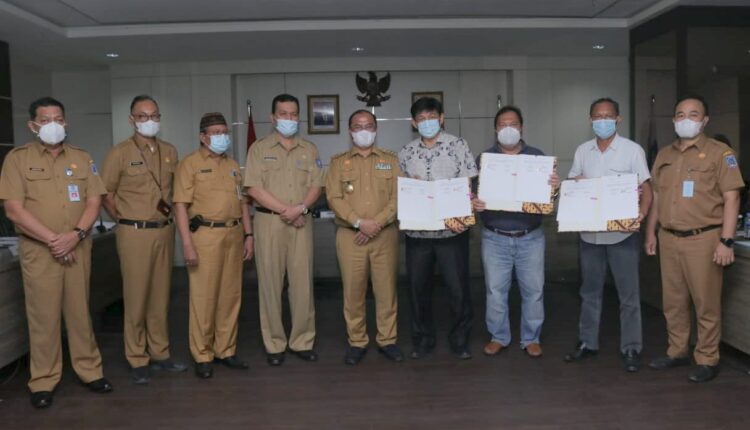 Penandatanganan kontrak komoditi Pemeliharaan Rutin Jalan ditandatangani langsung oleh Gubernur Babel, Erzaldi Rosman bersama penyedia Direktur Katalog Lokal terpilih yaitu Direktur PT Sinar Matahari Abadi, PT Karya Mulia Nugraha, dan PT Lembawai Indah Makmur, di Ruang Tanjung Pendam Kantor Gubernur, Senin (17/05/2021).