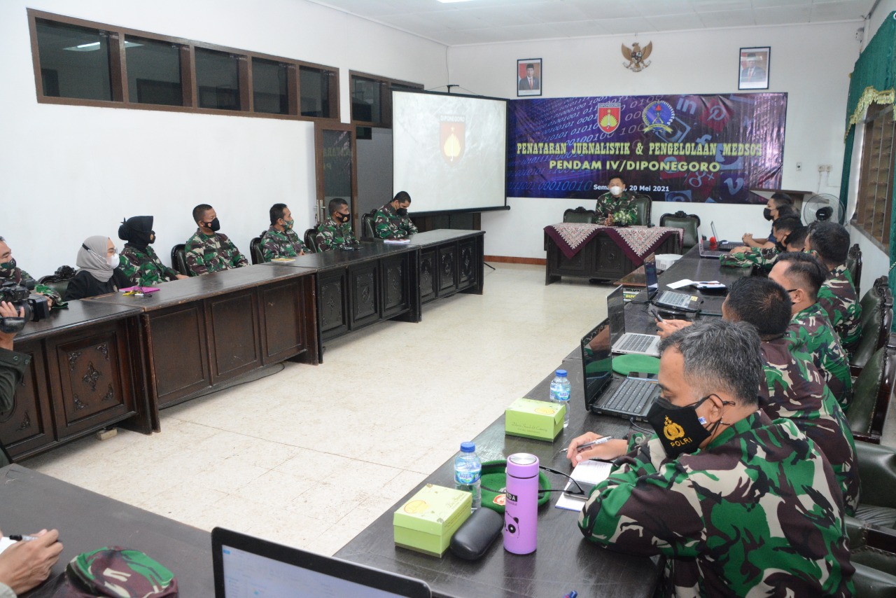 TerabasNews, Semarang – Bertempat di Aula Penerangan Kodam IV/Diponegoro Jl. Perintis Kemerdekaan Watugong Semarang , Kamis, (20/5/2021) Kapendam IV/Dip Kolonel Kav Susanto S.I.P., M.A.P., membuka Penataran Jurnalistik dan Pengelolaan Medsos kepada seluruh unsur penerangan jajaran Korem, Kodim BS/Semarang dan Batalyon BS wilayah Kodam IV/Diponegoro.