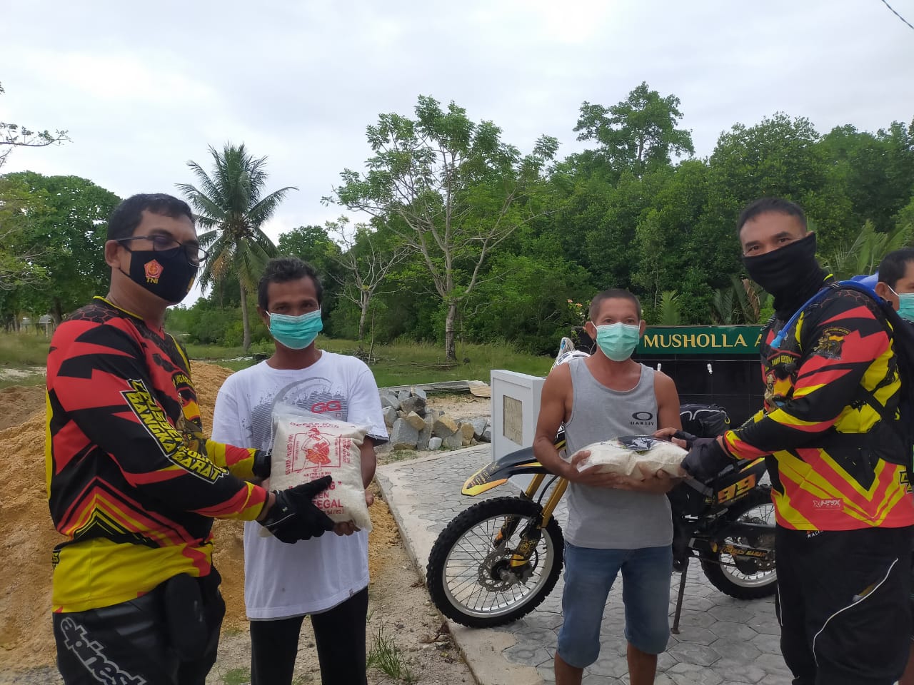Dalam kegiatan itu Kapolres Bangka Barat AKBP Ferdiansah SIK mengendarai sepeda motor trail untuk melaksanakan kegiatan penyaluran bantuan paket sembako kepada warga kurang mampu atau terdampak Covid-19